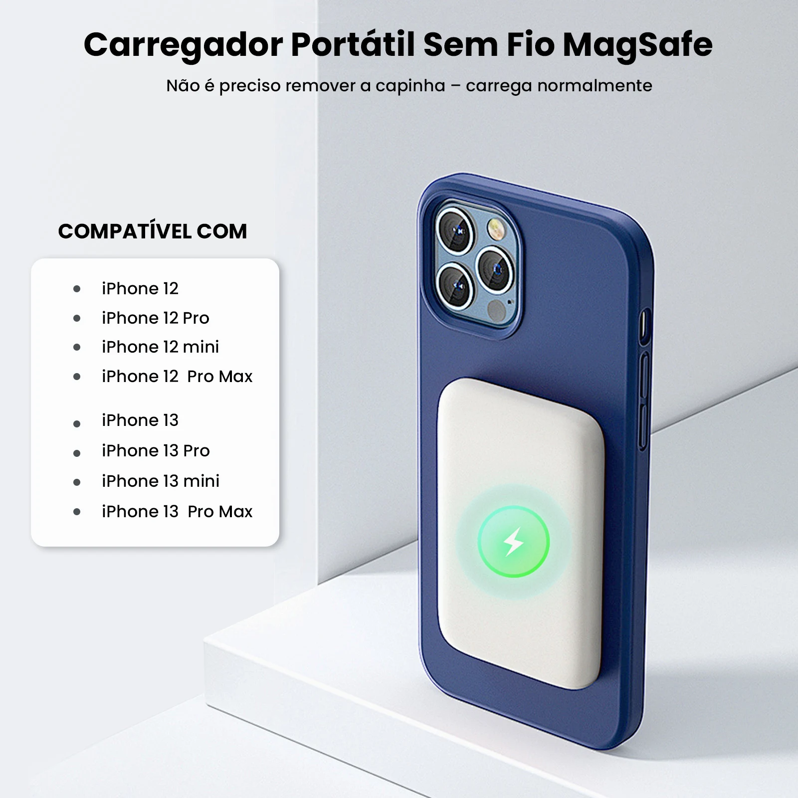 Conexão: Magnética com MagSafe (iPhones 12 e 13)