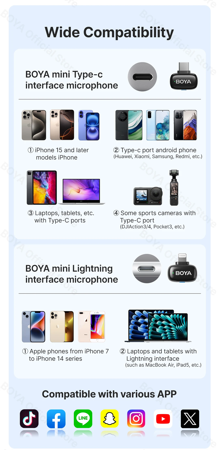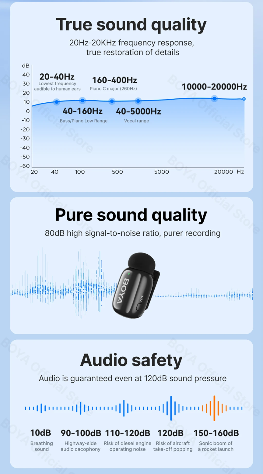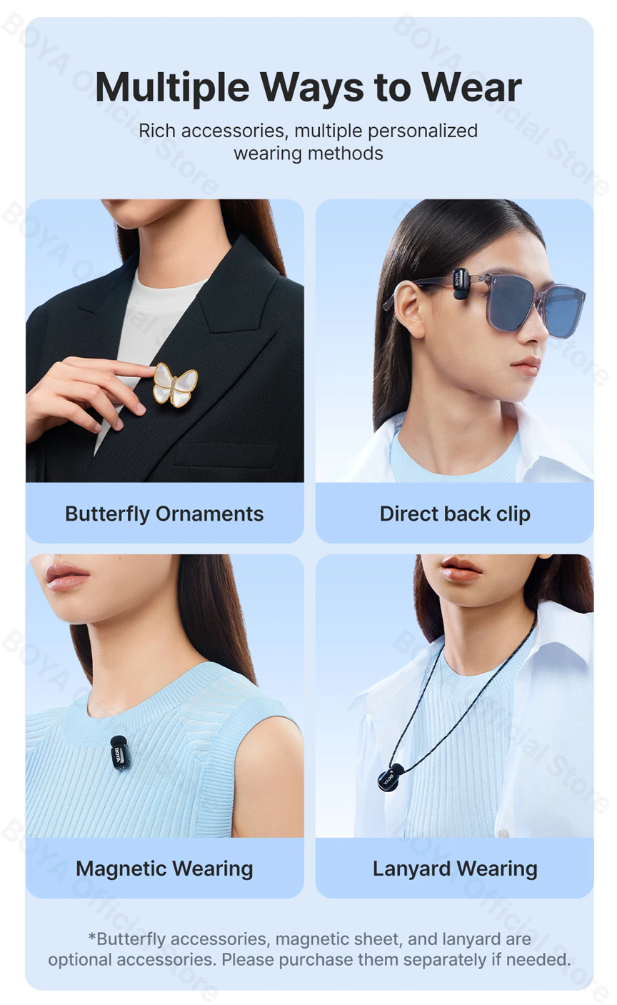 Especificações – Microfone de Lapela Sem Fio BOYA Mini (1TX-1RX com Estojo) – Conexão USB-C