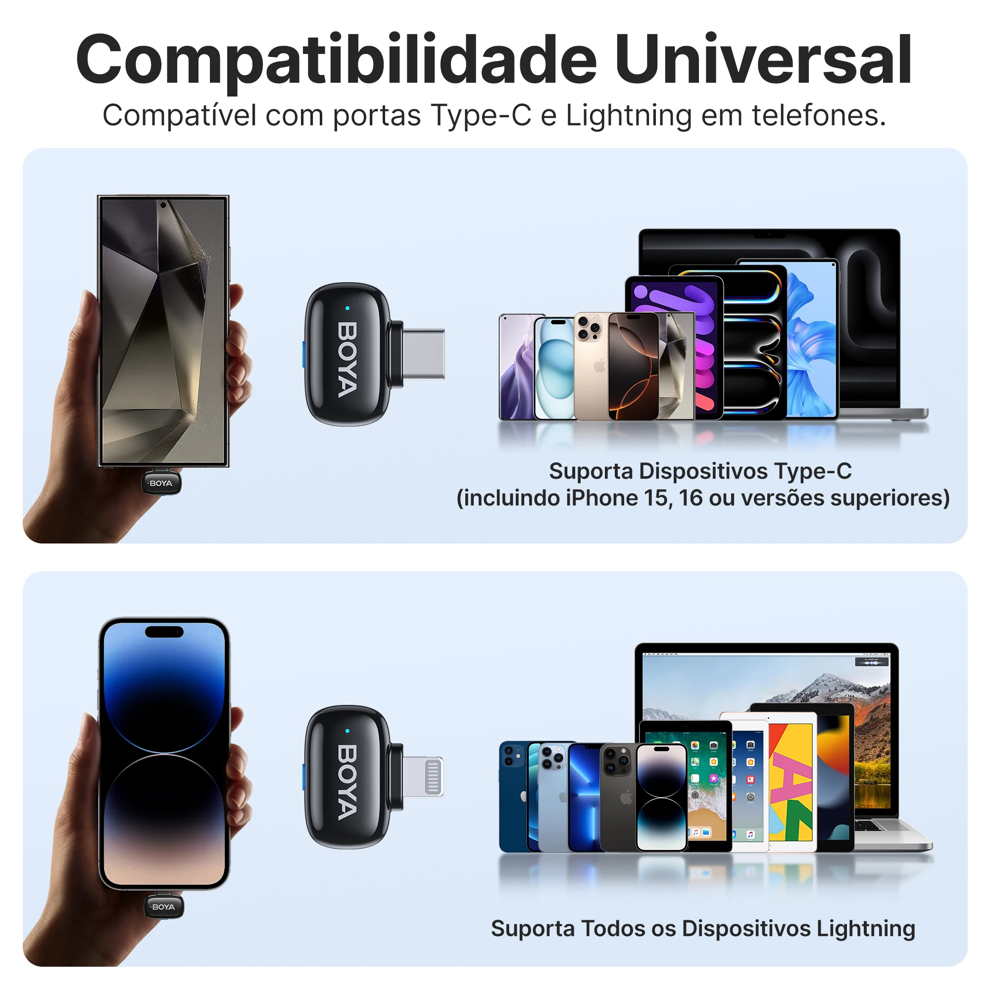 Compatibilidade: dispositivos com entrada USB-C, incluindo Android, tablets e iPhones 15 e 16